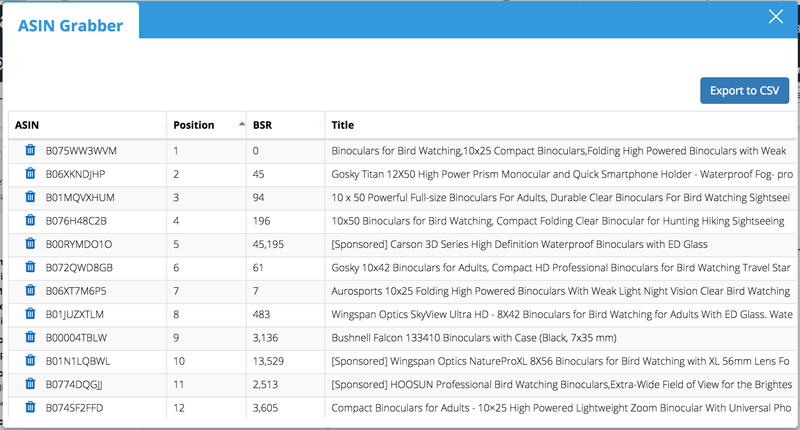 • ASIN Grabber – Download and export all ASINs from a specific search result which can help you develop a very tailored AMS advertising targeting option.