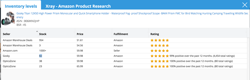 • Competing Sellers per ASIN