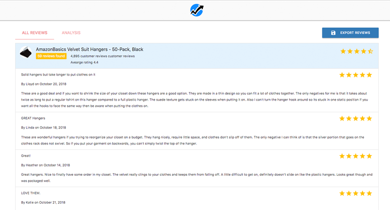 • Review Insights – Download and sort reviews to find product & keyword opportunities.