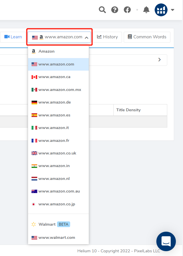 首先,在箭头处可以选择用于反查的ASIN所在的市场:目前支持12个亚马逊站点和沃尔玛美国站