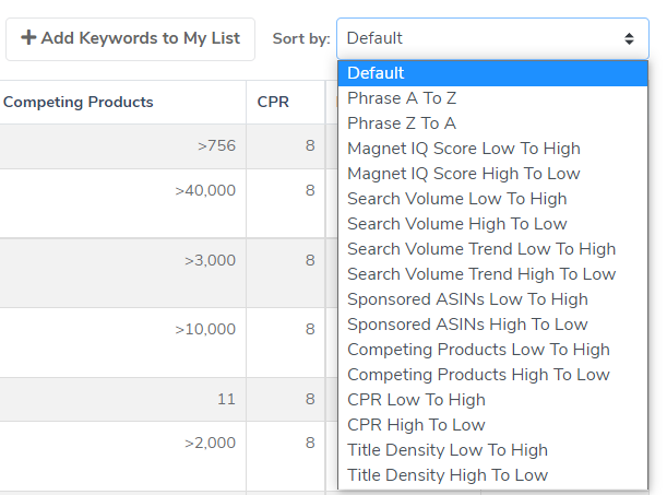CPR:该关键词下,产品要上到首页所需的出单数量(需持续8天达到这个出单量)Title Density:首页中,标题中含有关联关键词的产品数量