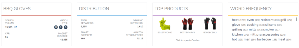 WORD FREQUENCY:词频(该关键词反查的所有结果中各个单词的出现频率)
