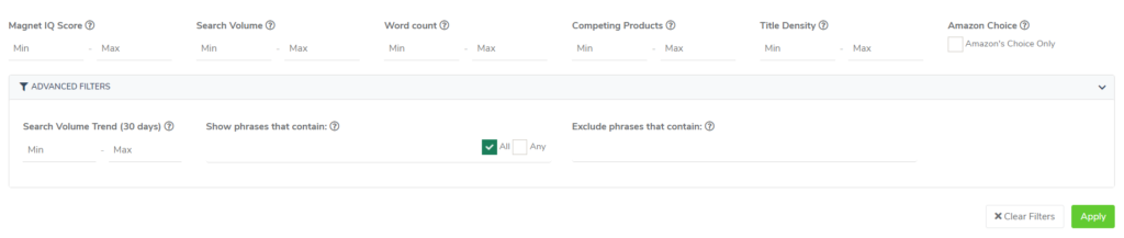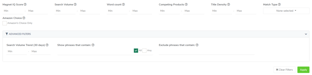 模块二:筛选工具(此处可以设置参数对反查的关键词结果作进一步的筛选)