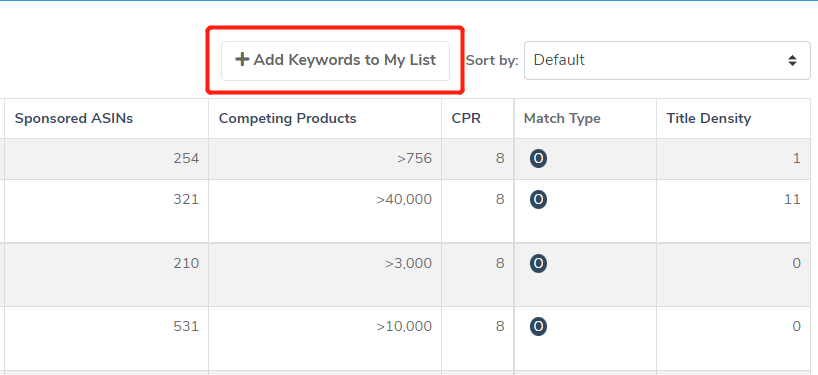 点击“Add Keywords to My List“可以将选中的关键词加入My List – Keywords(我的关键词列表)