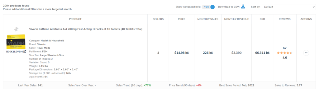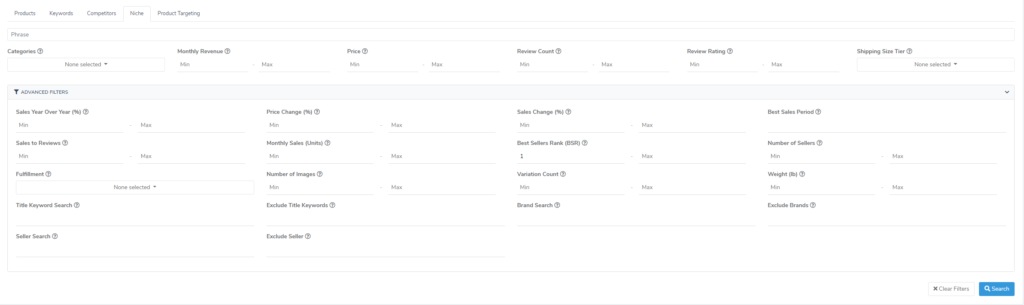 如果您想通过Helium 10大数据来查找竞品,可以使用这个工具,此工具一共分为两个模块:参数设置模块和搜索结果模块