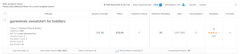 设置好参数,点击“Search“,系统就会筛选出相应的亚马逊商品