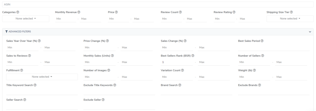 Categories:类目(可以在此选择你想要筛选商品的亚马逊类目)