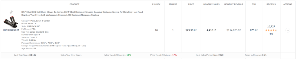 P-INDEX:竞争指数(满分10分),分数越高说明与该产品共享的关键词越多,售价、评论、星级越接近