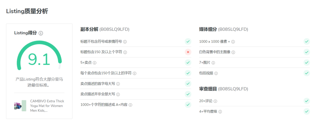 这个模块会告诉您,我们依靠哪些维度对Listing进行打分,该Listing有哪些地方尚有不足