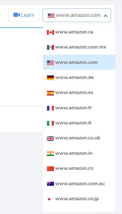 首先,在箭头下拉栏处可以选择用于Trendster工具所在的市场:目前支持12个亚马逊站点