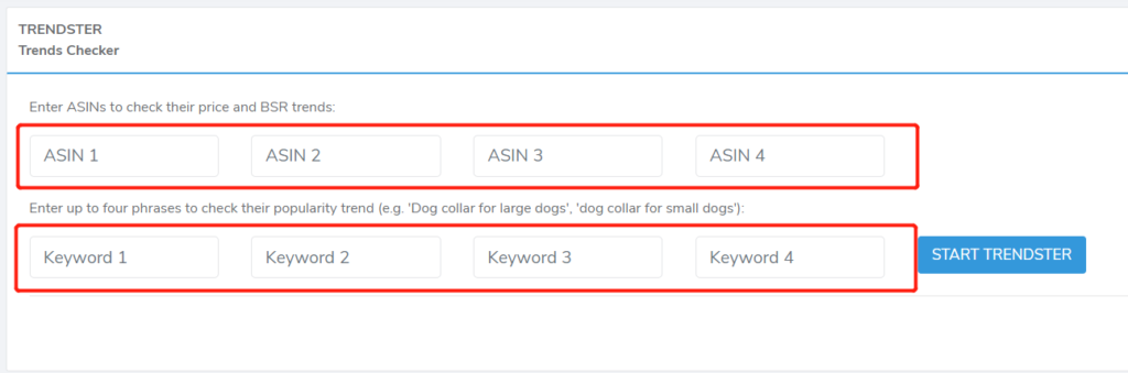 Trendster每次支持最多4个ASIN和4个关键词进行趋势分析