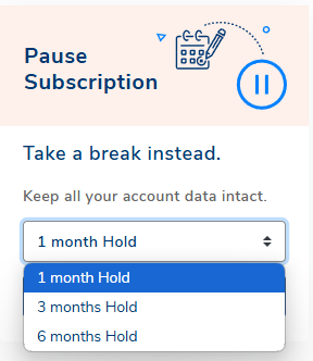 5. 此页面有暂停订阅选项。打开下拉菜单,选择最适合您的选项。选择暂停订阅以确认。