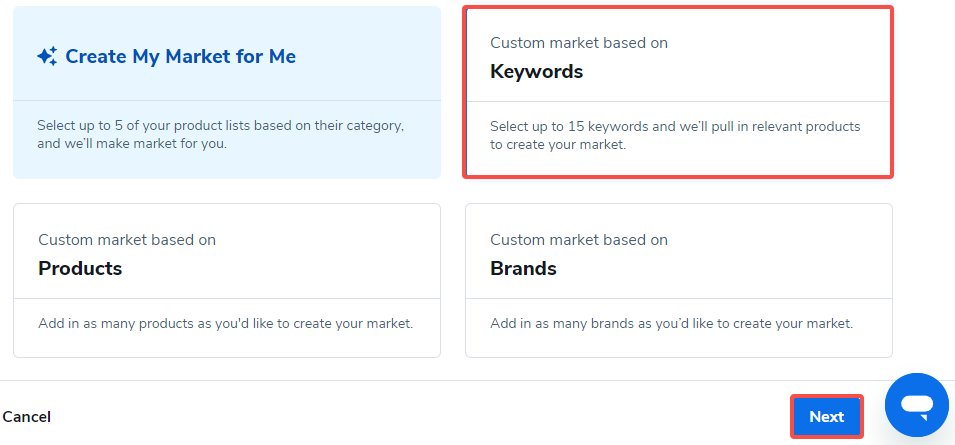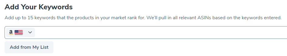 - 输入最多15个关键词或从我的列表中添加它们,然后选择下一步。
