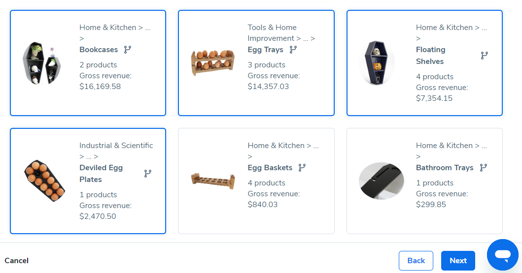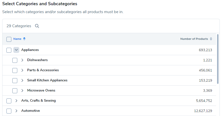 选择包含的产品将属于哪些类别和/或子类别,可以帮助进一步筛选您的市场,仅包含适用的产品。