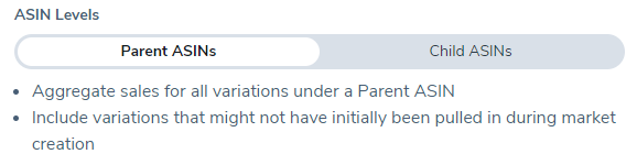 如果您想包含所有变体,请将ASIN级别设置为父级;如果您只想包含特定变体,请设置为子级。