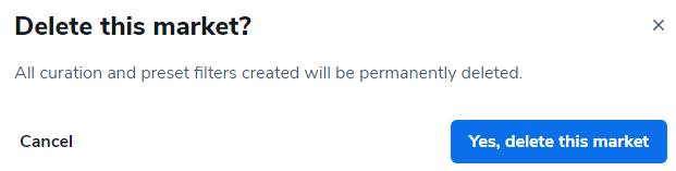 注意:删除市场无法撤销。重要的是要注意,一旦市场被删除,您将无法恢复。