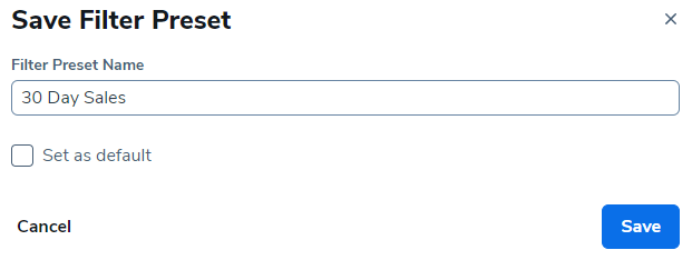 5. 为您的筛选器预设命名,然后选择保存。我们建议将其命名为有助于您记住筛选器更新的内容。