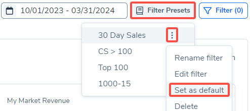 4. 选择设为默认。现在,每次打开市场时都会显示此筛选器预设。
