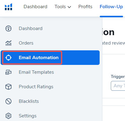 在跟进工具中开始操作时,从左侧菜单中选择电子邮件自动化。