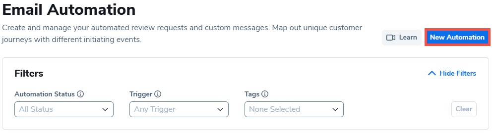 2. 在电子邮件自动化窗口中,点击右上角的蓝色新建自动化按钮。