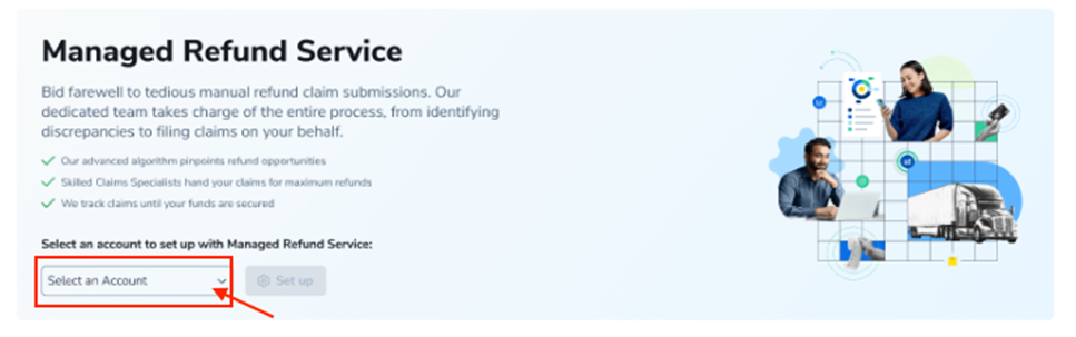 连接到亚马逊后,您将能够在下拉菜单中选择要为托管退款服务设置的账户。