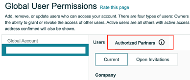 4. 在全局用户权限页面内,点击授权合作伙伴选项卡。