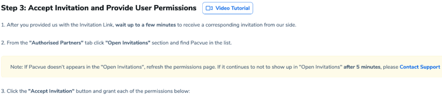 1. 提供邀请链接后在第二步中,请等待最多一分钟以接收来自Pacvue的相应邀请。