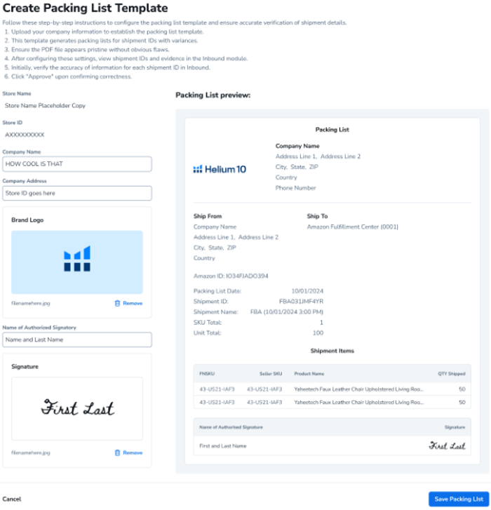 重要提示:使用此服务,Helium 10将不会审核装箱单;因此,您需要确保生成的装箱单完整、准确且包含最新的必要信息。