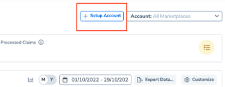 - 在这里,您将看到与您的亚马逊卖家中心令牌关联的所有账户列表。要为托管退款服务设置其他账户,请选择设置按钮,然后您将遵循与注册账户时相同的步骤。更多详情,请参阅设置您的账户。