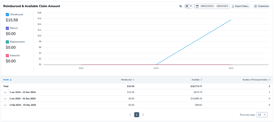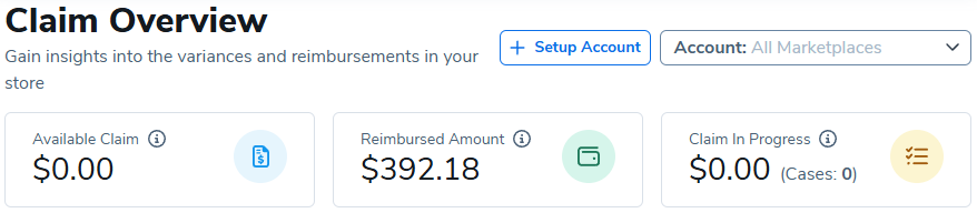 - 亚马逊赔偿金额 – 这代表Helium 10已帮助您从亚马逊追回的总金额,包括现金赔偿和库存价值。