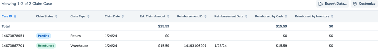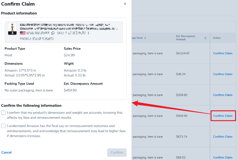 提交后,该案例将出现在索赔案例页面。由于亚马逊记录的产品尺寸和重量可能会随时间变化,Helium 10会持续监控多收费情况。为了最大化退款,建议您定期检查您的产品尺寸和待处理索赔。