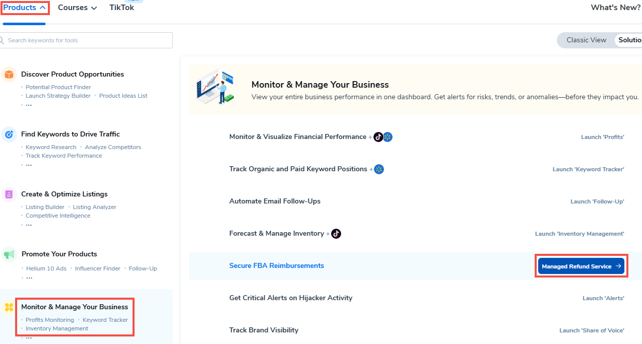 托管退款服务(MRS)是 Helium 10 提供的一项退款追回服务。它由 Helium 10 和我们的后端服务团队维护和运营。MRS 旨在通过代表卖家识别并提交追回索赔,从亚马逊为卖家追回资金。