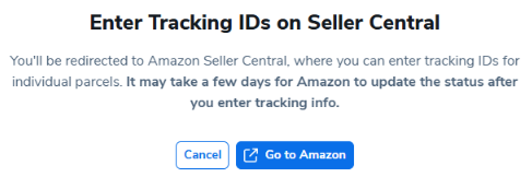 如果入库表中的操作列显示输入追踪信息,请点击它并选择前往亚马逊。您将被重定向到该特定货件ID的卖家中心,在那里您可以输入您的承运商(例如UPS、FedEx、USPS)提供的追踪ID。
