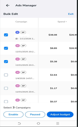 “最高 ACoS”部分突出显示支出最大的广告活动。使用广告管理器的批量编辑或单次编辑功能,您可以: