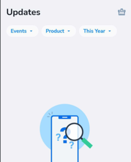 “更新”标签页显示由”提醒”工具生成的实时通知。这些通知帮助您监控关键的 listing 变更和账户事件。