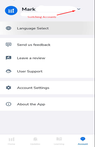 注意: 子用户可以在”账户”标签页内使用个人资料下拉菜单在账户之间切换。