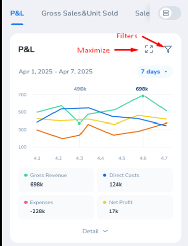 损益图将您的财务表现随时间可视化。这使您能够快速发现收入与利润的趋势、峰值或下降。