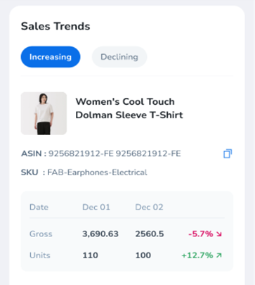 识别表现增长或下降的产品。这有助于您优先为表现优异的 ASIN 补货,或优化表现不佳的 listing。