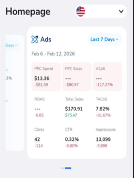 “广告”部分提供您的亚马逊 PPC 广告活动表现概览。