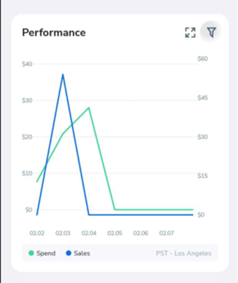 表现图直观显示广告活动趋势。使用筛选器自定义显示哪些指标,并识别支出效率低下或收入增长的机会。