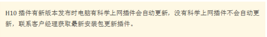 同样,用安装包安装的插件不会自动更新,插件会在bug修复或者新功能发布时不定期更新,建议不定期联系客户经理获取最新安装包。