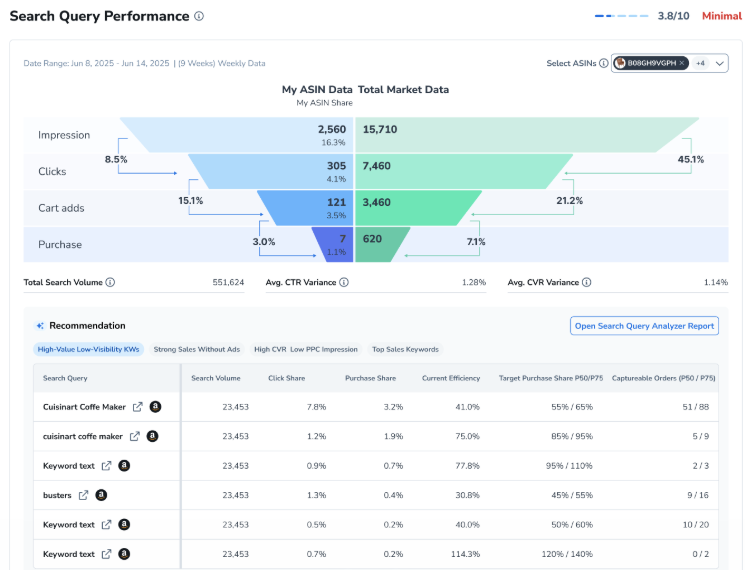 • 竞争对手页面 1 / 您的页面 2+: 揭示竞争对手在哪些方面胜过您的ASIN。
