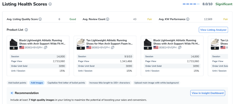洞察仪表板包含一个rsonalized business performance report. It provides analytics and recommendations for improving your listings, ads, keyword strategy, and more.
