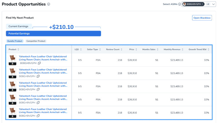 • 提供发送到Black Box按钮,用于更深入的产品研究和验证。