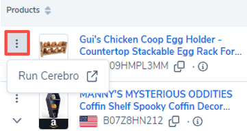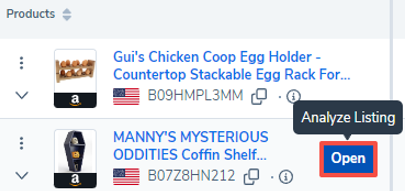 点击产品标题或悬停时出现的“打开”按钮,将为该ASIN打开商品列表分析器。