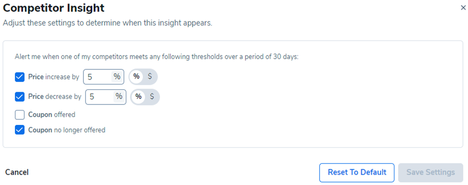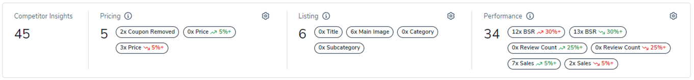 洞察仪表板上的竞争对手页面是监控和分析竞争对手产品列表的理想场所。竞争对手页面的一个巨大优势是它非常可定制,因此您可以根据自己的喜好调整设置,并收到您认为重要的竞争对手更新通知。