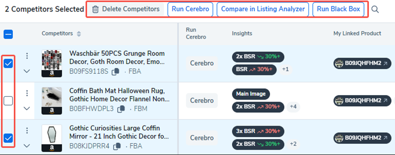 - 在列表分析器中比较:您可以在列表分析器中比较选定的竞争对手。