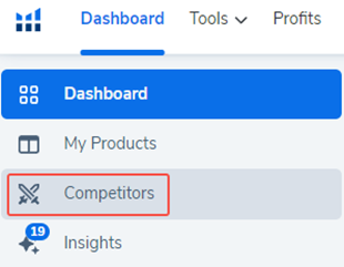 要访问竞争对手标签页,请从洞察仪表板展开左侧菜单并选择竞争对手。