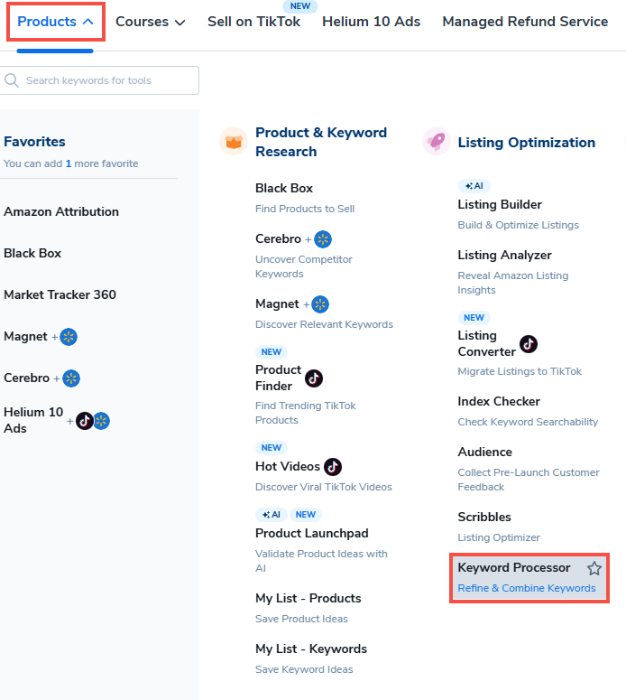 关键词处理器是Helium 10的高级关键词优化工具——以前称为Frankenstein。它旨在帮助您清理、排序和优化大型关键词列表,使其对产品列表和PPC广告活动更有用。