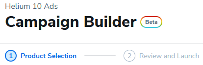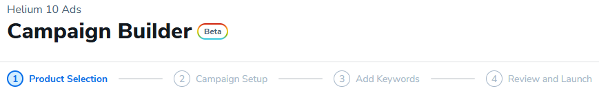与其他Helium 10工具一样,您会注意到顶部有一个进度跟踪器,以便您了解自己在广告活动设置过程中的位置。